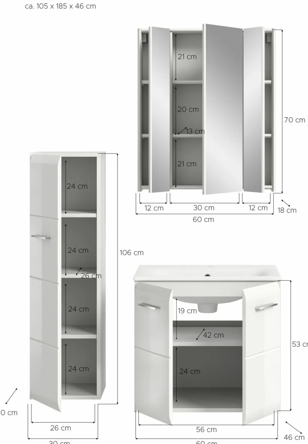 | Dimensions : | L/H/P env. 105/185/46 cm | ||