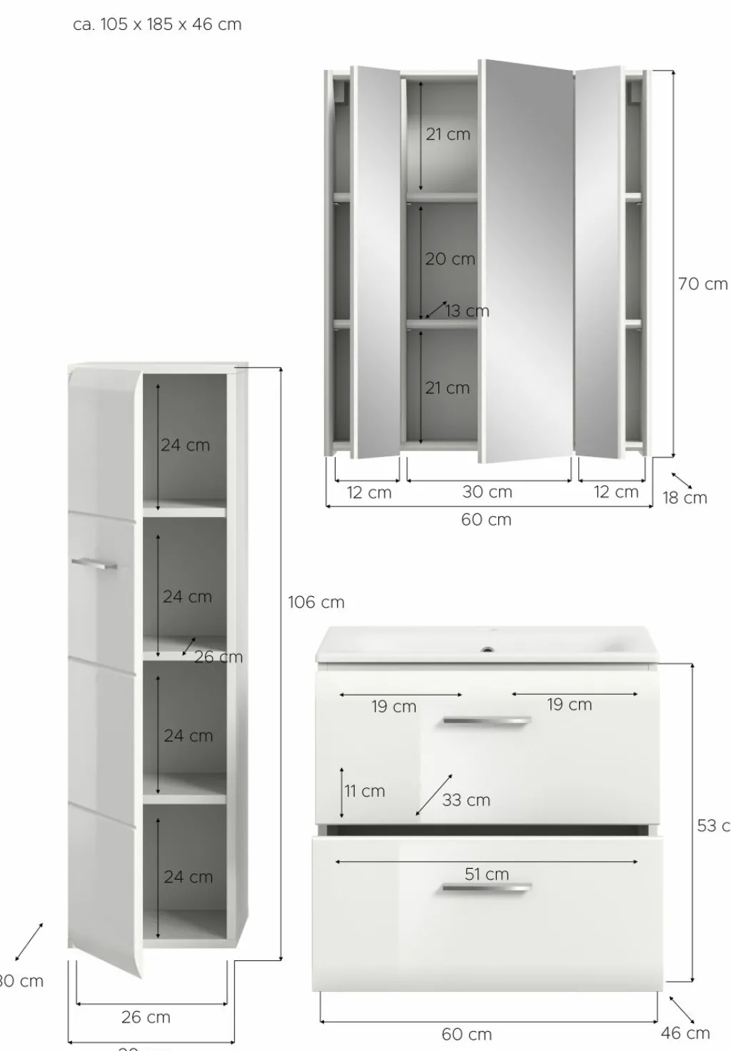 | Armoire de toilette | 60 | 70 | 18 |