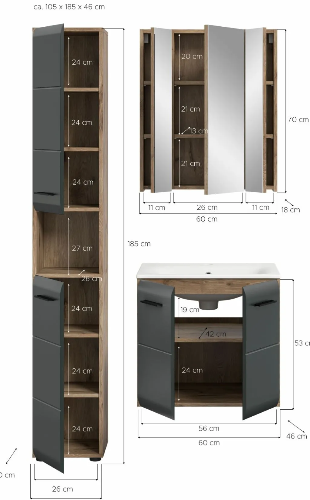 | Meuble sous vasque avec vasque | 60 | 55 | 46 |