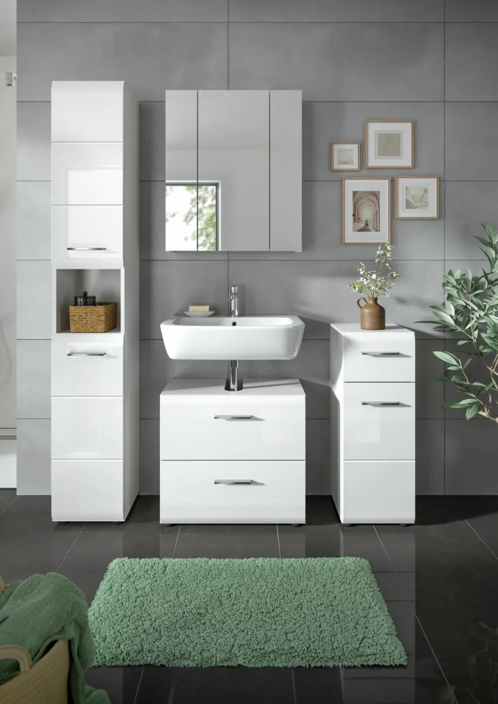 1 armoire de toilette avec 3 portes et 6 tablettes amovibles