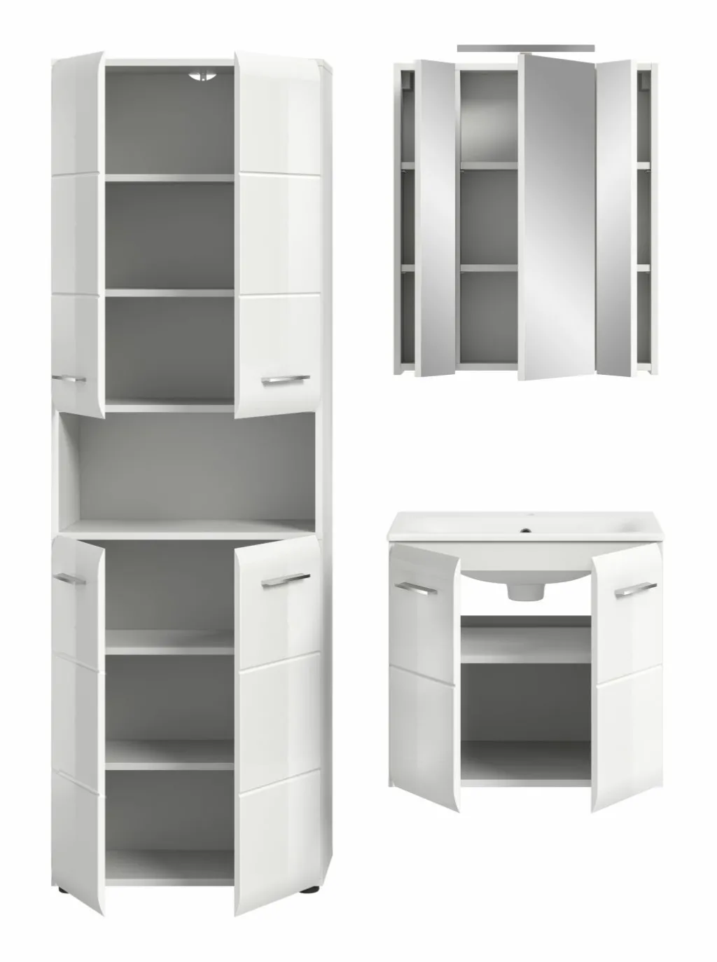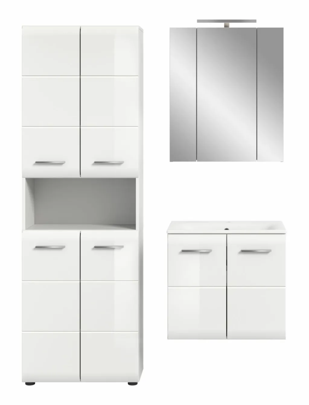 1 armoire de toilette avec 3 portes miroir et 4 tablettes amovibles, incl. lampe de salle de bains
