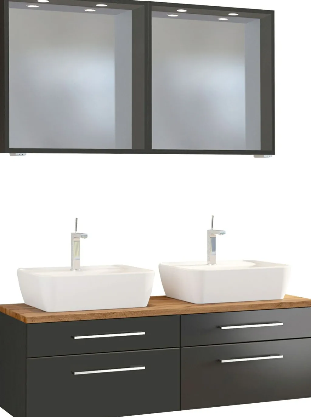 1 meuble sous vasque avec 2 tiroirs bas et 2 tiroirs hauts avec fermeture amortie, incl. découpe siphon