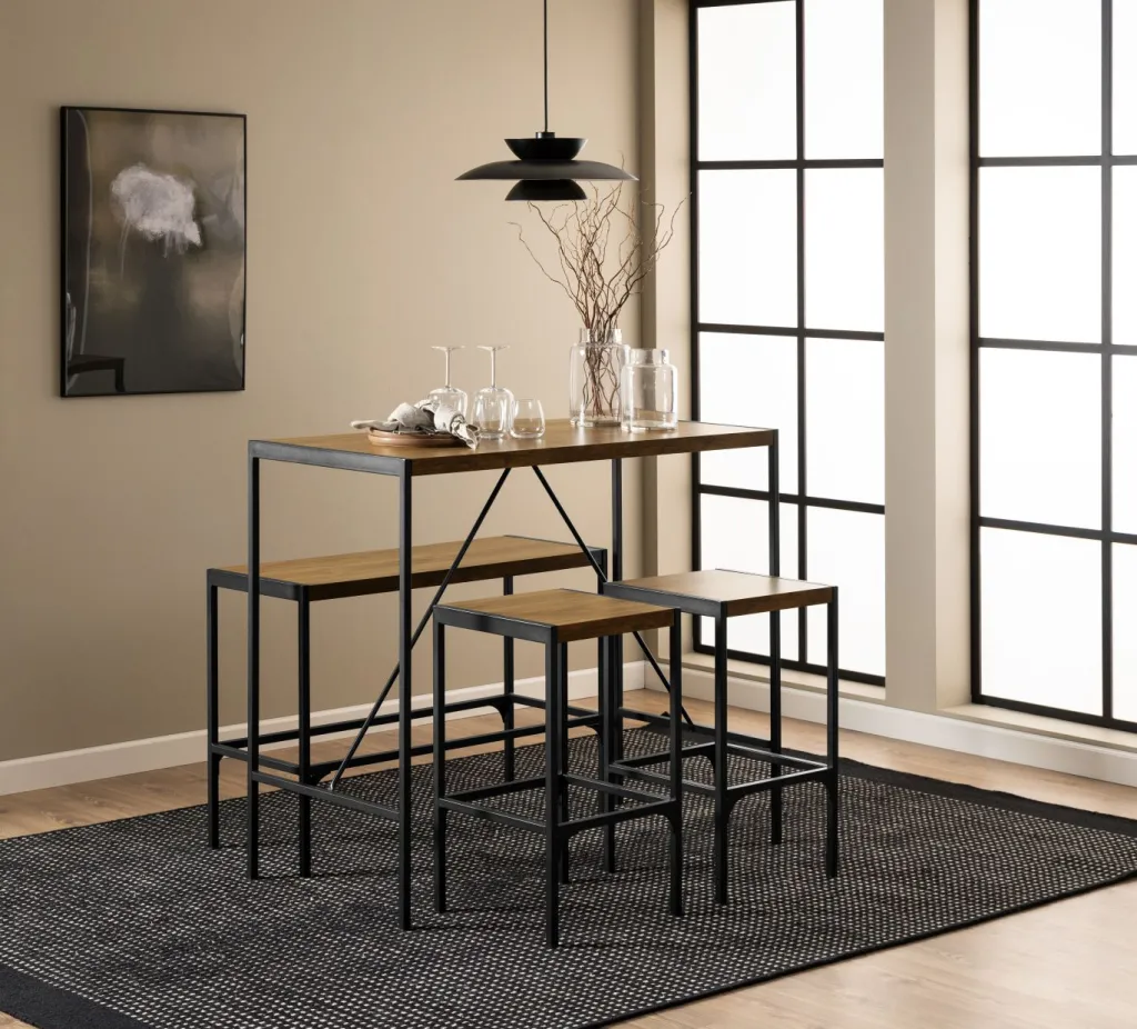 1 ensemble table de bar, banc et tabourets