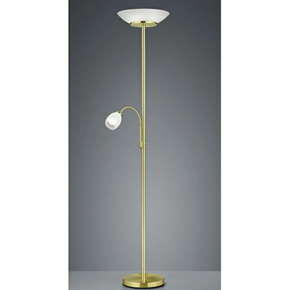 Un design sobre et un aspect tendance. Le lampadaire GERRY offre de nombreuses possibilités d’utilisation et d’association. La lampe trouve idéalement sa place près du canapé puisqu’une liseuse vient compléter la source lumineuse principale afin d’offrir un éclairage optimal. Le bras souple de la liseuse permet de l’orienter de façon précise afin de régler le flux lumineux selon vos besoins. Le lampadaire a une hauteur d’env. 180 cm et un diamètre d’env. 34 cm. Grâce au coloris classique ton laiton mat, le luminaire s’intègre facilement dans différents styles d’intérieurs. Pour profiter d’une lampe économe en énergie, il est recommandé d’utiliser une ampoule LED. Ce type d’ampoules est une alternative idéale aux ampoules halogènes puisqu’elles diffusent une lumière de qualité tout en réalisant jusqu’à 80 % d’économie d’énergie. De plus, les ampoules LED disposent d’une durée de vie accrue pour une production de chaleur moindre et favorisent la protection de l’environnement.