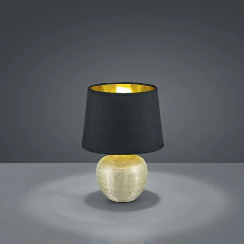 L’élégante lampe de table LUXOR trouvera rapidement la place idéale : sur un buffet, dans l’entrée ou comme lumière d’ambiance dans la chambre, cette lampe moderne attirera tous les regards dans la pièce. La lampe de table avec interrupteur cordon a un diamètre de 18 cm et une hauteur de 26 cm. Le pied en céramique ton doré créé une ambiance conviviale et s’harmonise parfaitement avec l’abat-jour noir dont l’intérieur est également doré. Pour profiter d’une lampe économe en énergie, il est recommandé d’utiliser une ampoule LED. Ce type d’ampoules est une alternative idéale aux ampoules halogènes puisqu’elles diffusent une lumière de qualité tout en permettant de réaliser jusqu’à 80 % d’économie d’énergie. De plus, les ampoules LED disposent d’une durée de vie accrue pour une production de chaleur moindre et favorisent la protection de l’environnement.