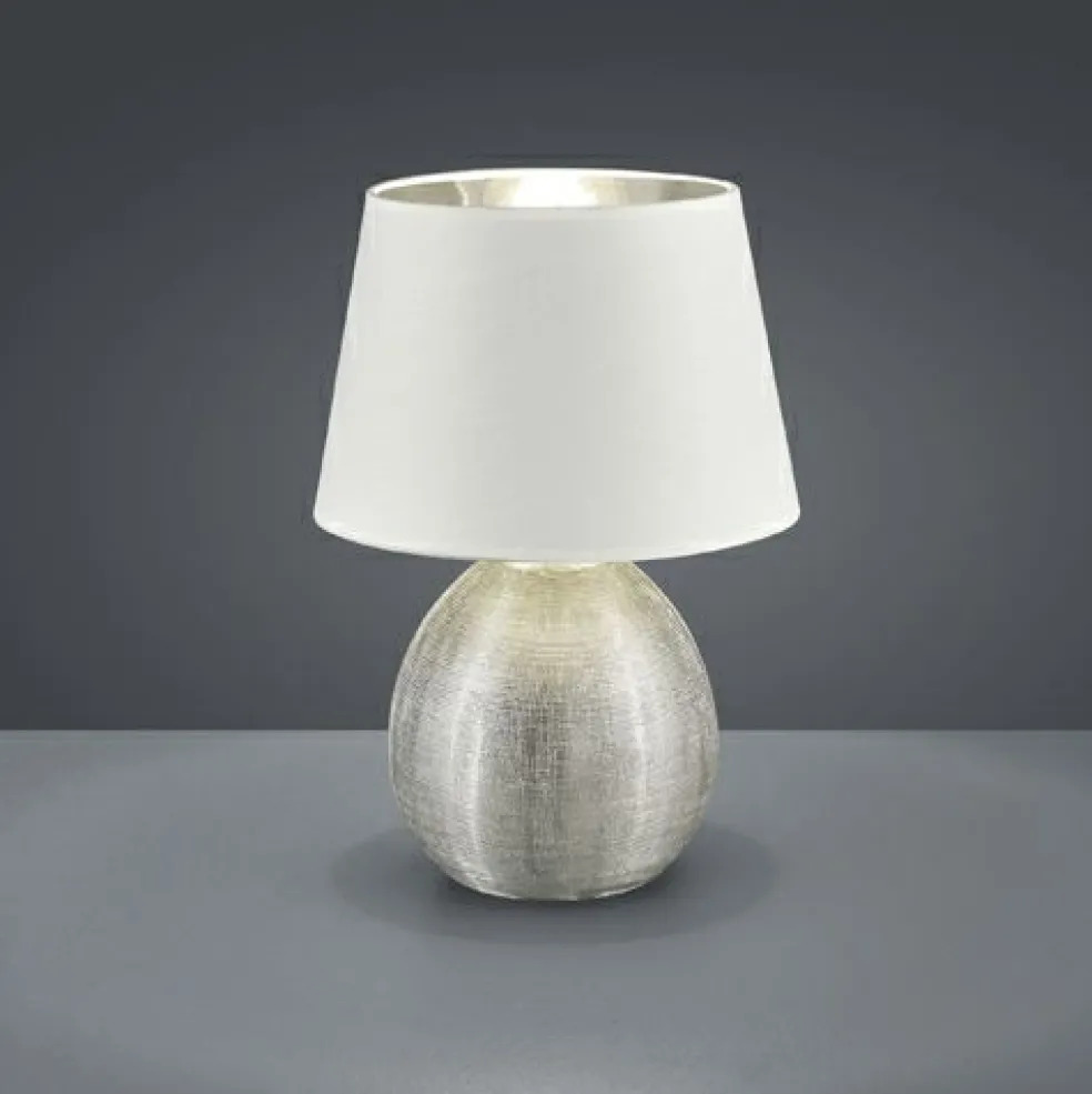 L’élégante lampe de table LUXOR trouvera rapidement la place idéale : sur un buffet, dans l’entrée ou comme lumière d’ambiance dans la chambre, cette lampe moderne attirera tous les regards dans la pièce. La lampe de table avec interrupteur cordon a un diamètre de 24 cm et une hauteur de 35 cm. Le pied en céramique ton argent créé une ambiance conviviale et s’harmonise parfaitement avec l’abat-jour blanc dont l’intérieur est également argenté. Pour profiter d’une lampe économe en énergie, il est recommandé d’utiliser une ampoule LED. Ce type d’ampoules est une alternative idéale aux ampoules halogènes puisqu’elles diffusent une lumière de qualité tout en permettant de réaliser jusqu’à 80 % d’économie d’énergie. De plus, les ampoules LED disposent d’une durée de vie accrue pour une production de chaleur moindre et favorisent la protection de l’environnement.