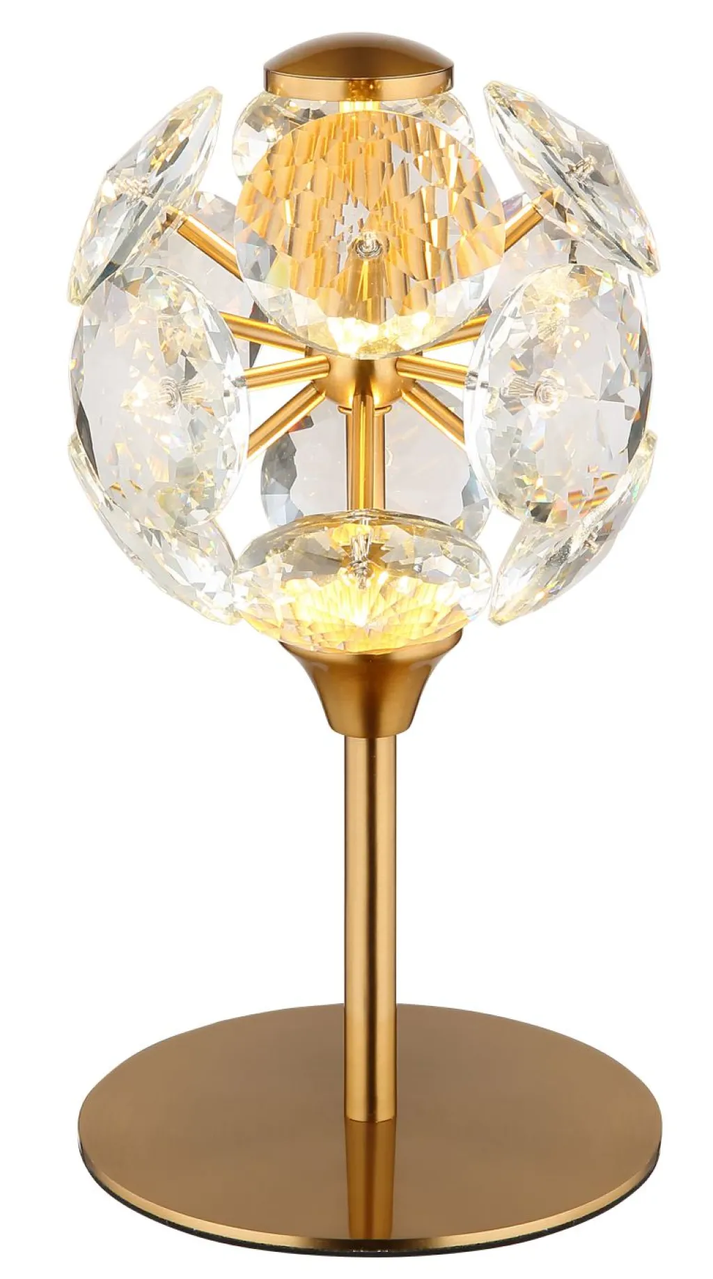 La lampe de table ronde en métal doré et cristaux transparents K9 avec abat-jour en forme de boule est un accessoire élégant pour tout type de pièce. L’abat-jour équipé de cristaux scintillants confère à la lampe une note glamour et garantit une luminosité agréable dans la pièce.