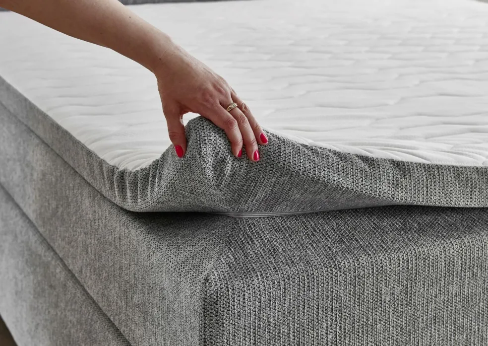 Surmatelas integre : surmatelas solidement cousu au matelas de base. Aspect d’un surmatelas separe, sans risque de glissement. Une encoche / un chevauchement permet de fixer un drap-housse sans recouvrir les cotes du matelas.