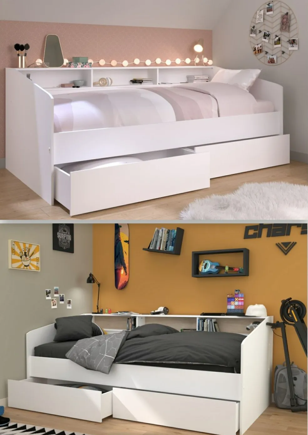 | Type de lit: | Lit avec rangements, Lit simple | ||