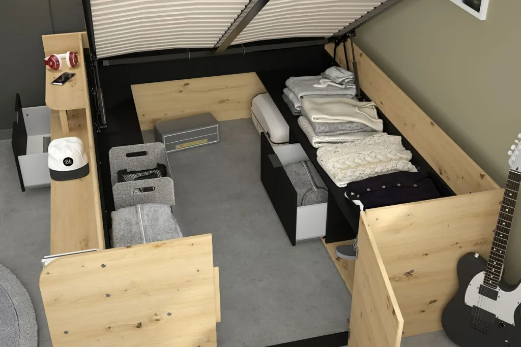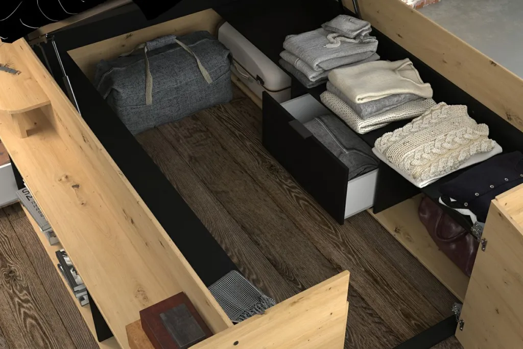 | Equipement lits: | Tiroirs, incl. sommier à lattes | ||