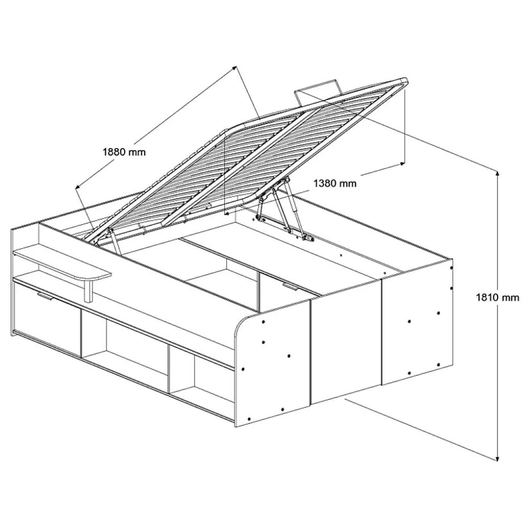 Côté gauche du lit : 1 tiroir, étagères, 1 marche, tête et pied de lit – soft