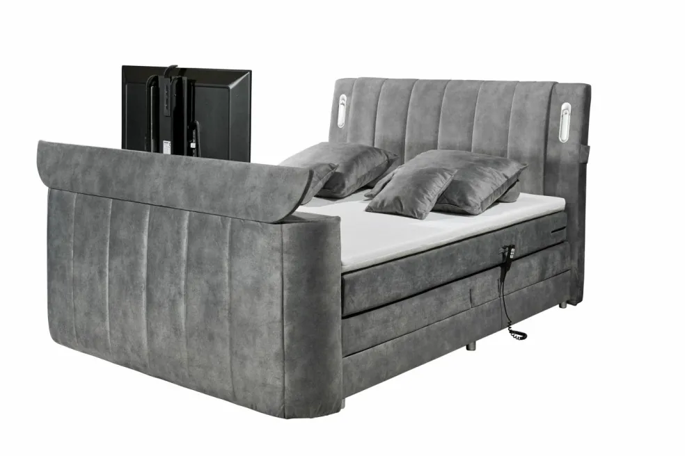 1 pied de lit matelassé avec espace de rangement pour téléviseur jusqu’à 40 pouces (fixation TV motorisée)