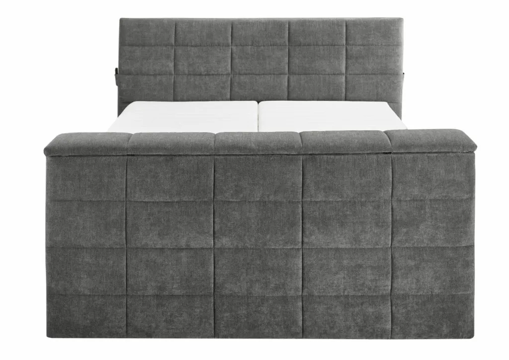 Caisson : structure stable de qualité en contreplaqué ; âme à ressorts ensachés tonneaux, 1 couche de mousse T25 d’env. 1 cm d’épaisseur