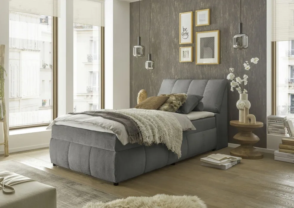 Caisson stable en contreplaqué de qualité, âme à ressorts bonnell 4 spires 2,2 mm, 1 couche de mousse T25 d’env. 1 cm d’épaisseur