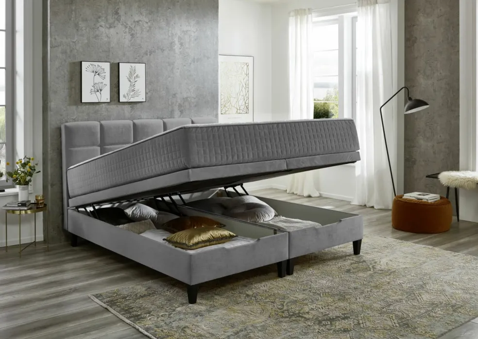 Avec coffre de lit intégré, couvercle facile à ouvrir grâce au vérin à gaz