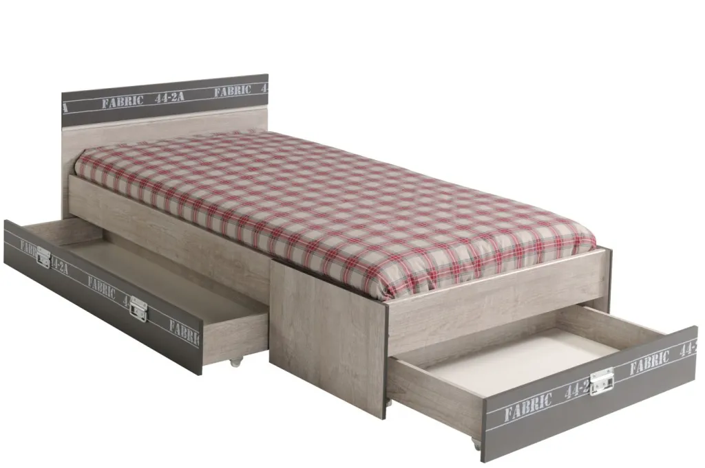 Le lit d’ado FABRIC 10 marque des points par son design ultra cool, sa finition d’excellente qualité et sa capacité à créer une atmosphère tendance et agréable. Trois tiroirs de lit offrent un vaste espace de rangement.