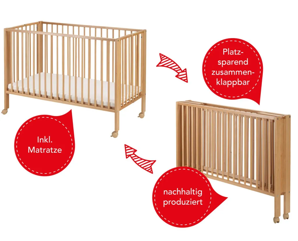 Grâce à sa fonction pliante sans outils, le lit est monté rapidement – et démonté et rangé tout aussi facilement.