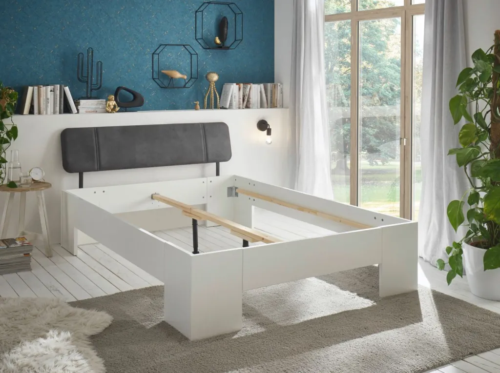 Revêtement de la tête de lit : cuir synthétique ton blanc 100% polyuréthane