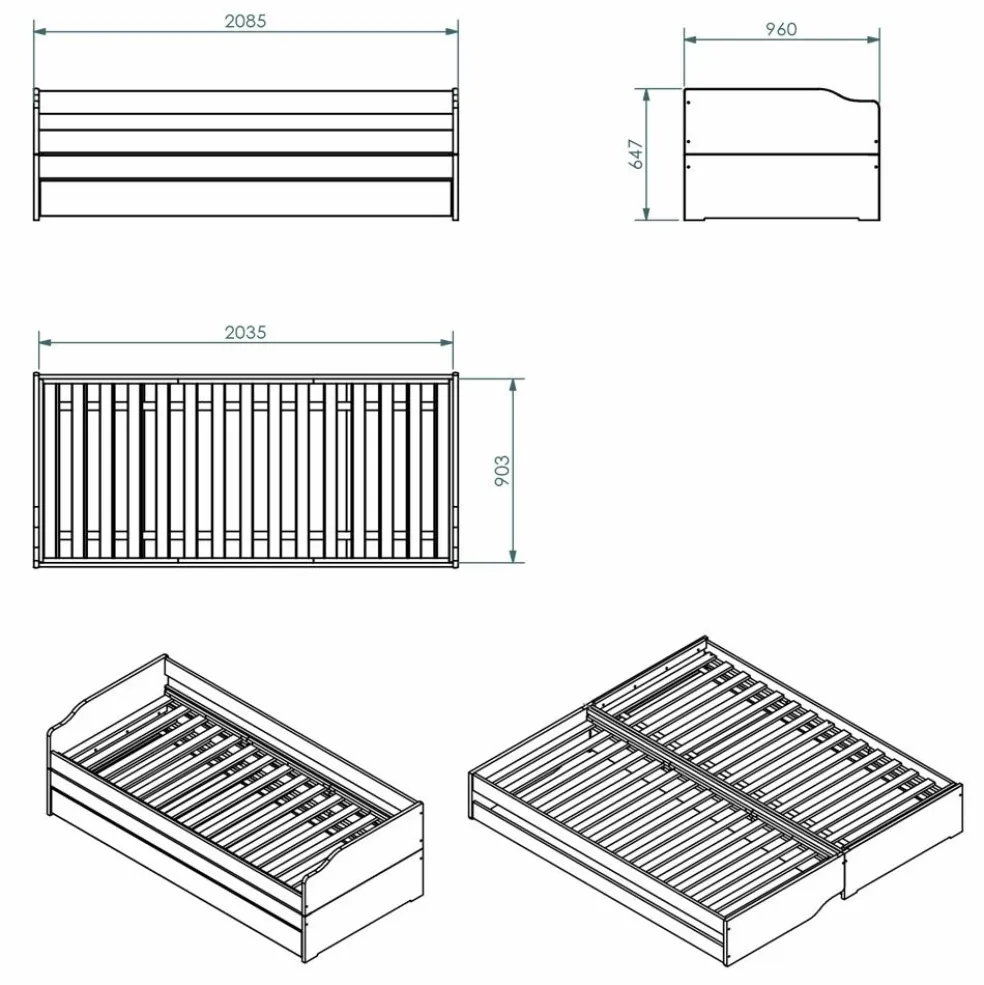 | Type de lit: | Lit gigogne / lit avec rangements, Lit pliant, Lit simple | ||