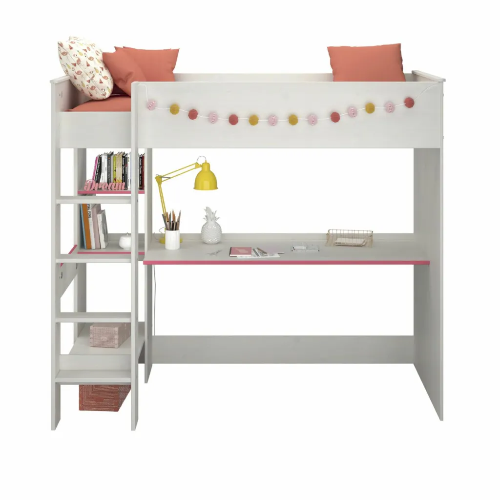 La chambre d’enfant SMOOZY 3 est proposée dans un aspect clair et convivial. Les chants ton rose lui confèrent un aspect tendance. Le lit mezzanine confortable avec bureau et étagères intégrés offrent beaucoup de place pour ranger les jouets, livres et bien plus encore. C’est la solution idéale pour une petite pièce.