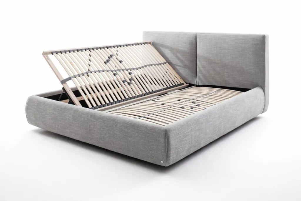 inclus : 2 coffres de lit avec multi-perforations et sommiers à lattes multiplis avec ouverture latérale