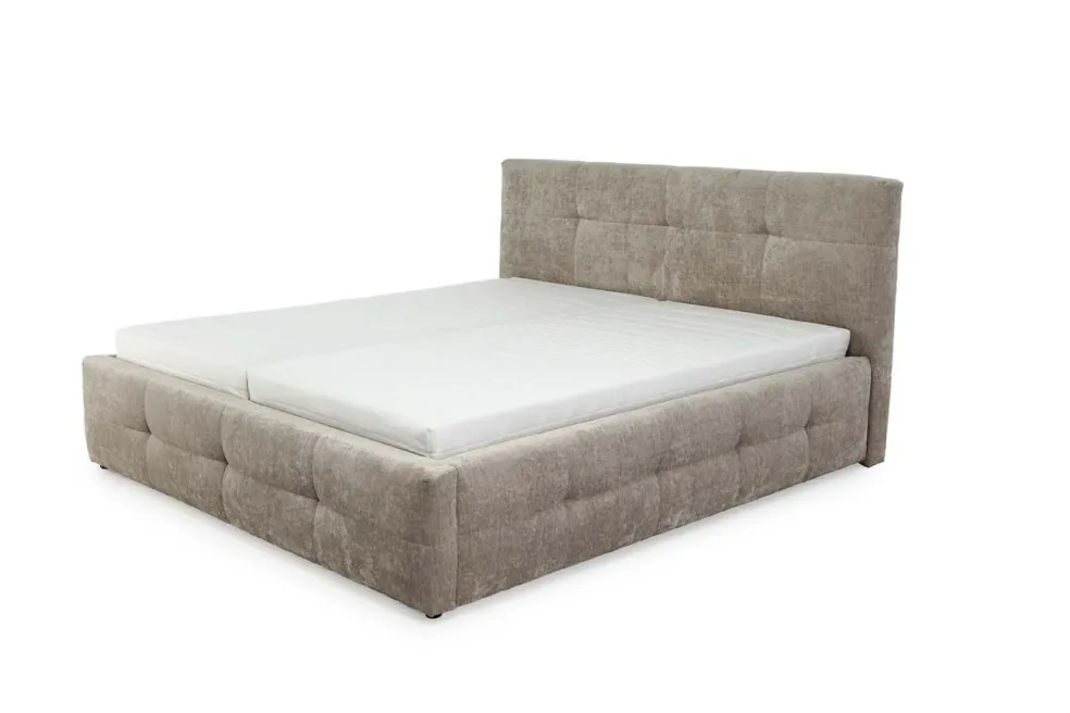 Le système Vario de ce lit rembourré est très flexible et permet de positionner un sommier à lattes en bois multiplis dans 2 hauteurs différentes.
