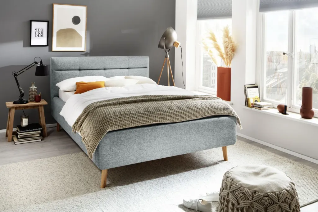 1 cadre de lit avec tête de lit rembourrée