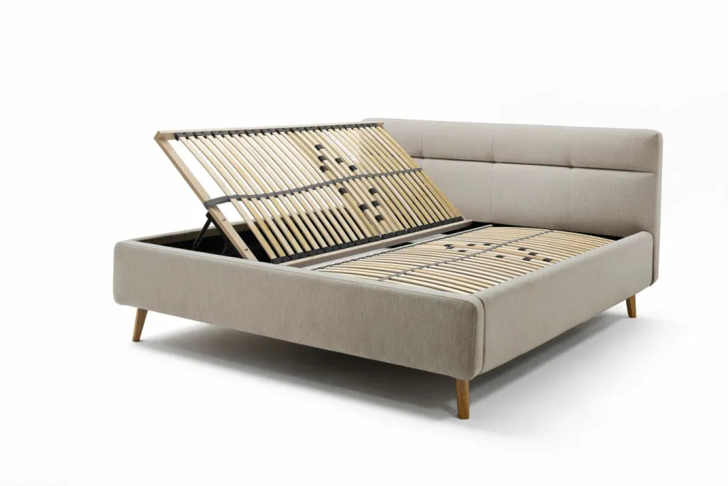 inclus : 2 coffres de lit avec aération et sommiers à lattes multiplis avec ouverture latérale