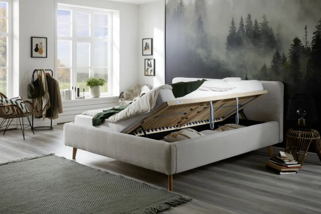 inclus : coffre de lit et sommier à lattes multiplis avec ouverture latérale