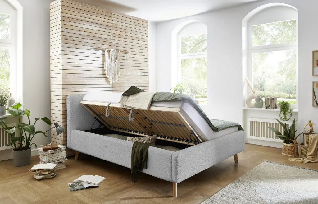 inclus : 2 coffres de lit avec aération et sommiers à lattes en bois multiplis avec ouverture latérale