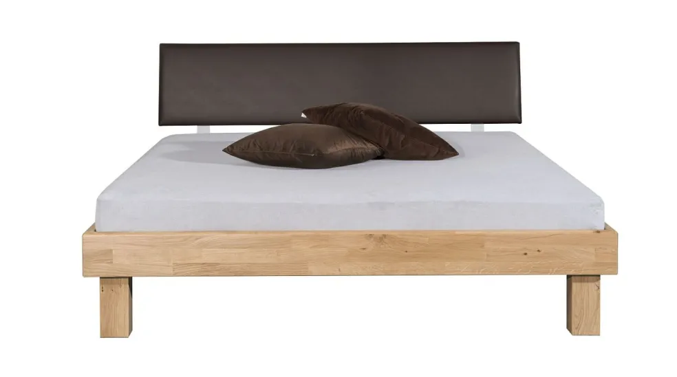 chêne sauvage massif, Quercus robur (Pologne) ton naturel huilé avec une tête de lit en cuir synthétique ton marron (100% polyuréthane)