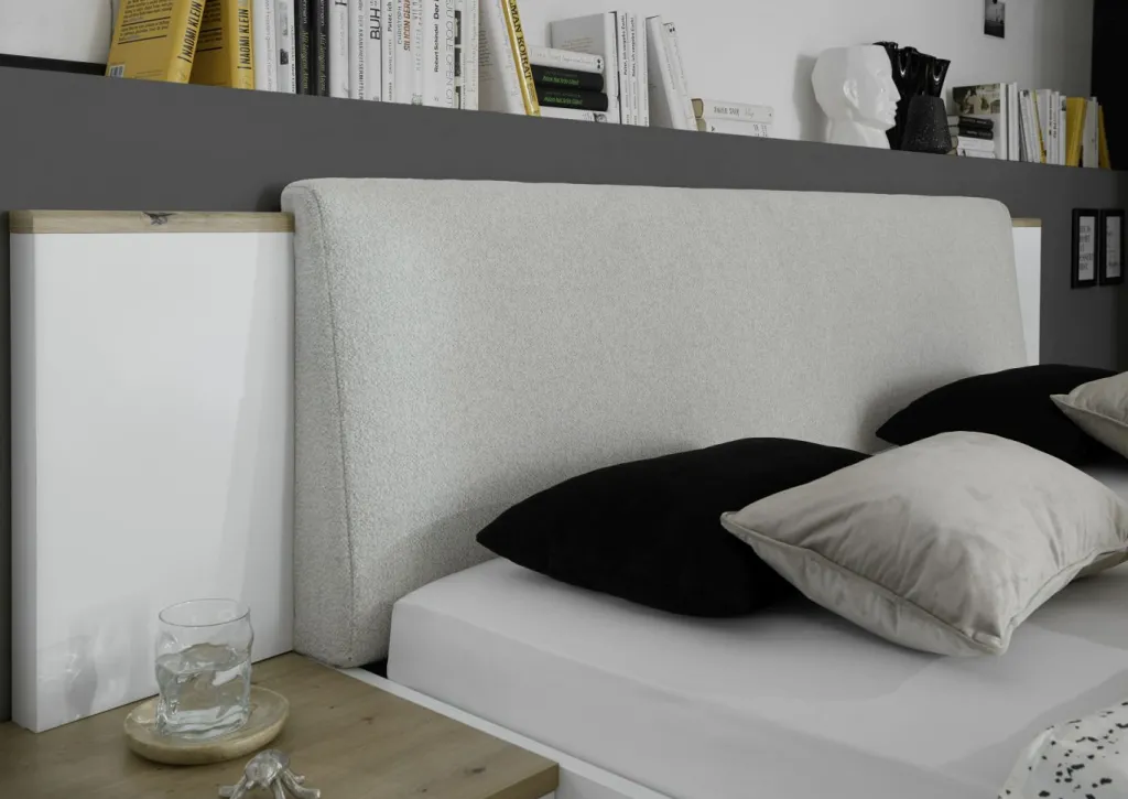 Revêtement de la tête de lit : tissu tissé ton beige clair 100% polyester