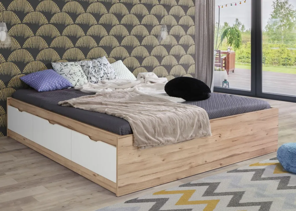 décor chêne planches de chêne et façades tiroirs ton blanc
