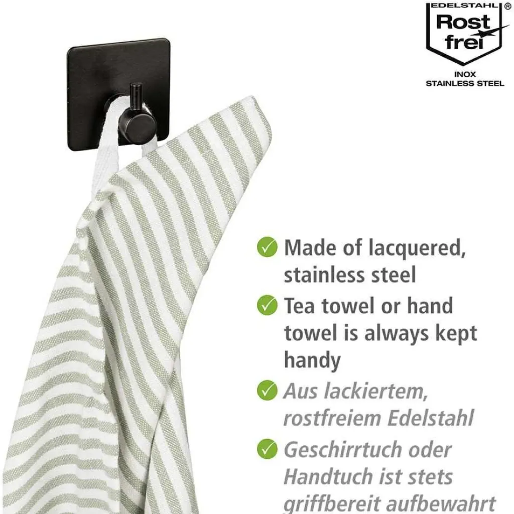 Crochets de qualité supérieure : les crochets séduisent par leur forme carrée moderne et sont fabriqués en acier inoxydable, recouverts d’une peinture noire mate. Ils apporteront ainsi une touche originale à votre intérieur. Cet accessoire pratique convient aussi parfaitement à l’extérieur, car les crochets ultra chics peuvent être fixés au barbecue à l’aide du ruban adhésif fourni.