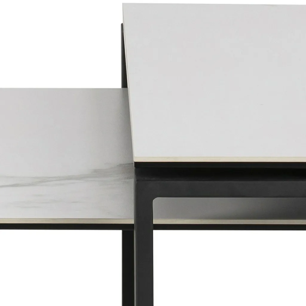 Piètements : métal noir mat, finition époxy d’aspect rugueux
