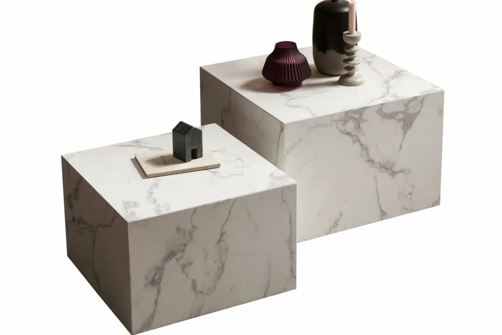 MDF (panneaux de fibres de bois de moyenne densité) revêtu d’un film en mélamine aspect marbre blanc