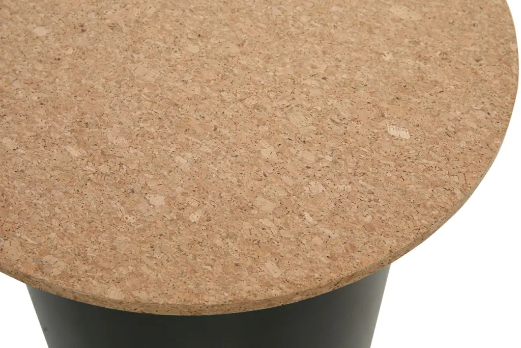 Plateaux : MDF ( panneaux de fibre de bois de densité moyenne) et liège laqués ton naturel