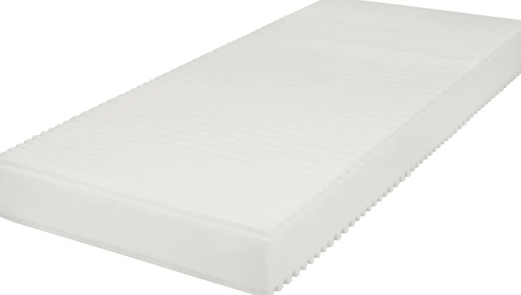 Âme : mousse confort en polyuréthane d’env. 19,2 cm d’épaisseur, 25 kg/m³, 3.4 kPa, chaque face avec découpe 7 zones différente, avec un confort de couchage légèrement différent pour chaque face