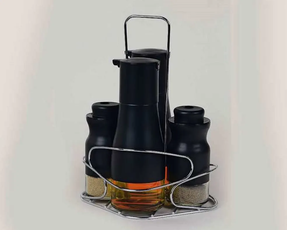 1 ménagère 4 pièces (huile, vinaigre, sel et poivre) avec support