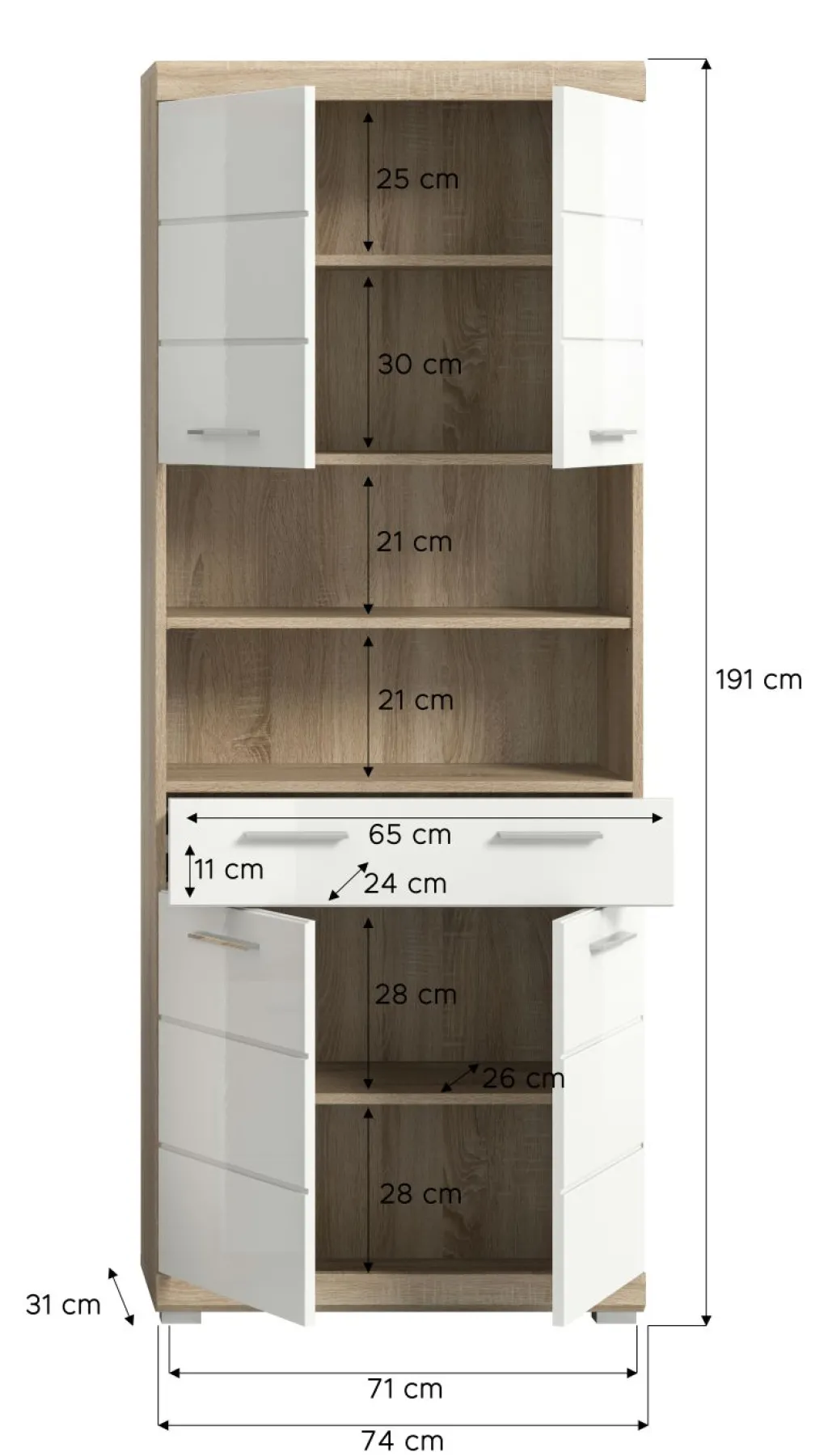 | Dimensions : | L/H/P env. 74/191/31 cm | ||