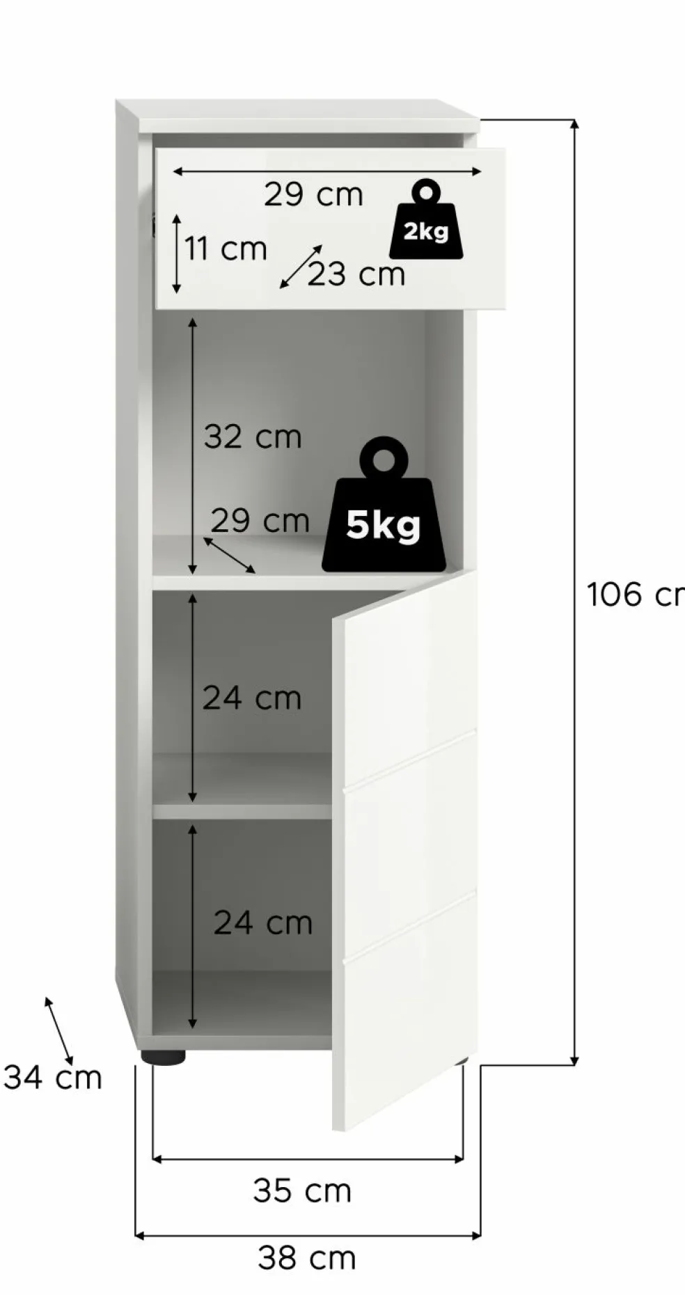| Dimensions : | L/H/P env. 38/106/34 cm | ||