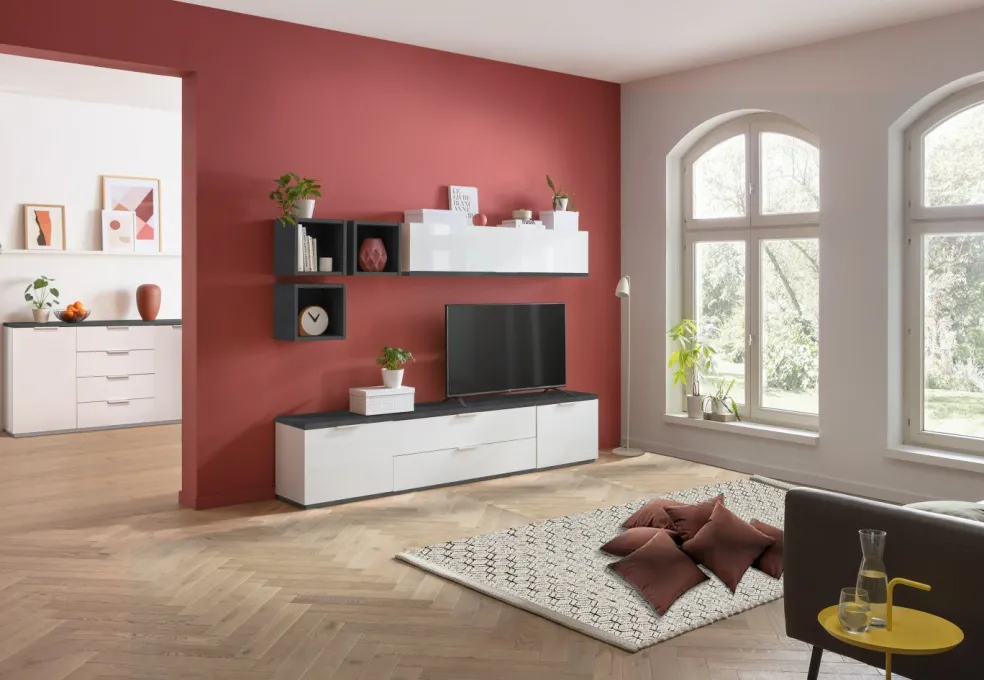 Façade et caisson : ton blanc ultra brillant / aspect pierre