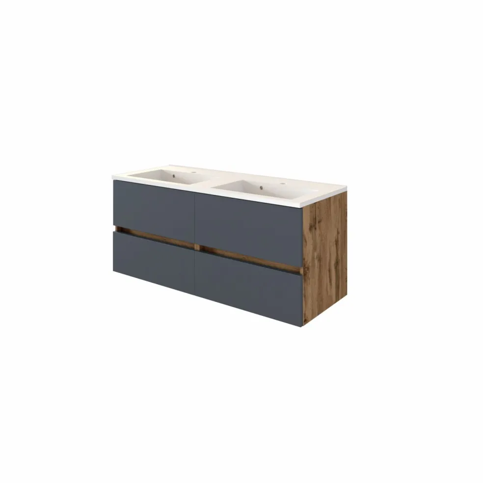 1 meuble sous vasque avec 4 tiroirs en métal avec fermeture amortie, sans poignées