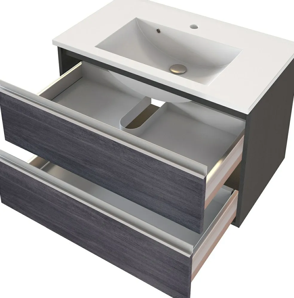 1 meuble sous vasque avec 2 tiroirs sur rails métalliques à fermeture amortie