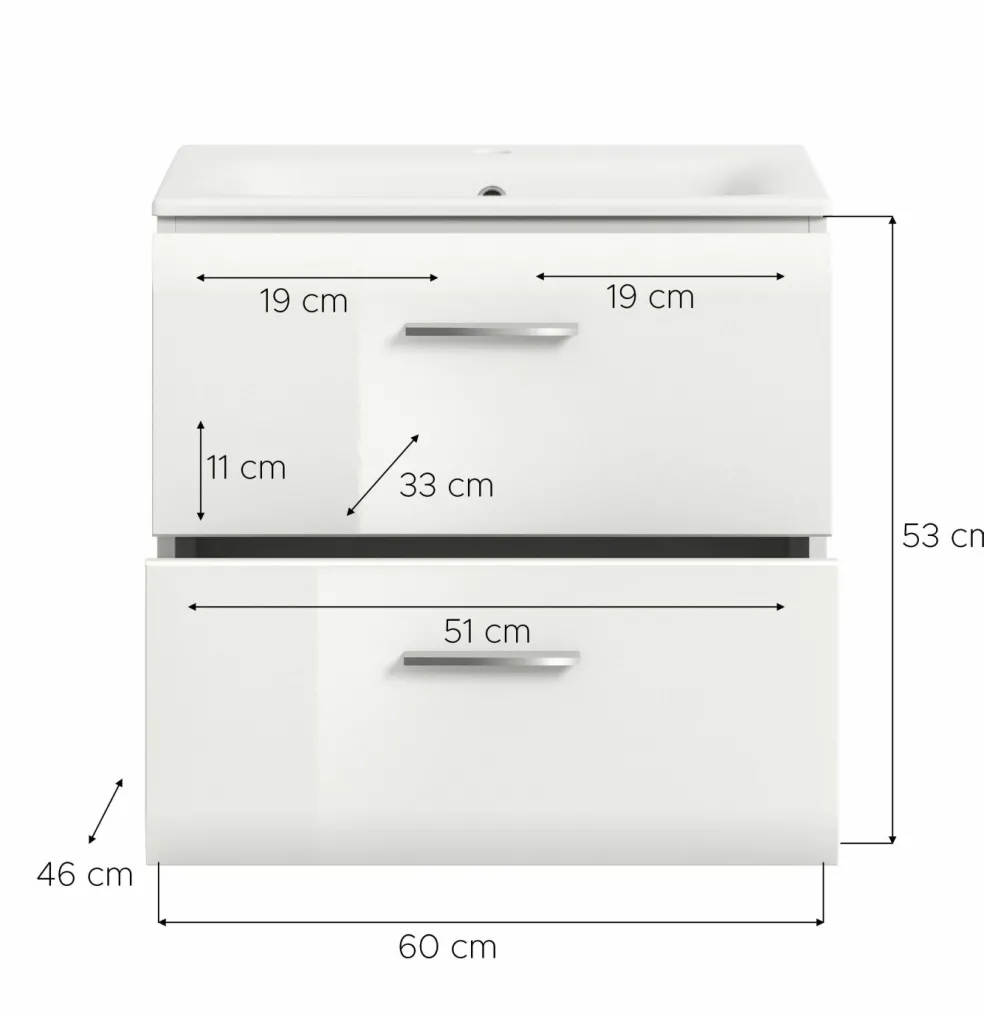 | Meuble sous vasque avec vasque | 60 | 55 | 46 |