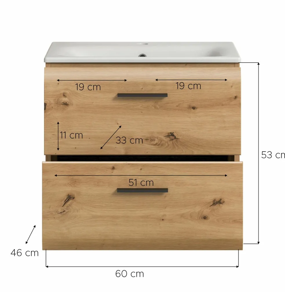 | Meuble sous vasque avec vasque | 60 | 55 | 46 |