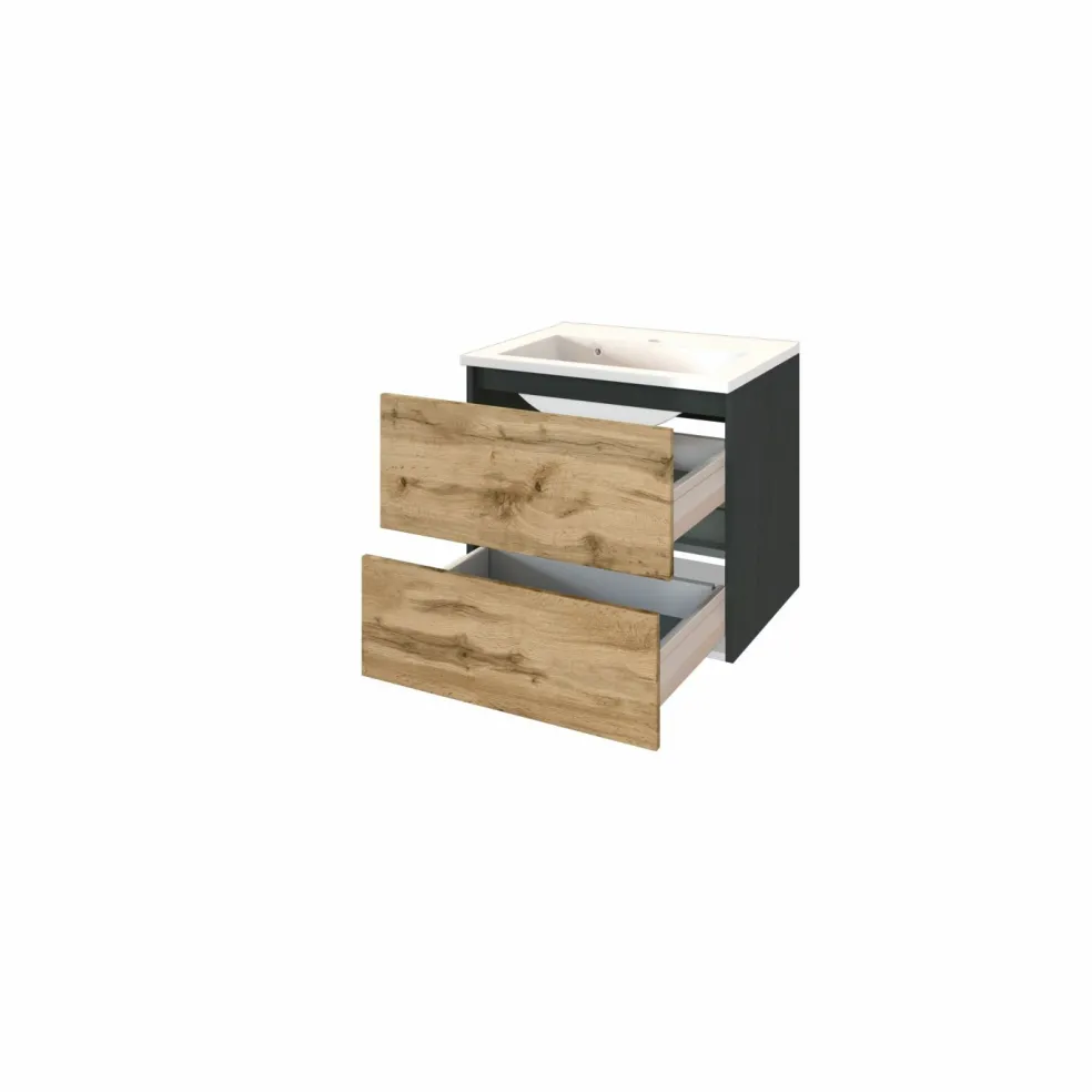 1 meuble sous vasque avec 2 tiroirs en métal avec fermeture amortie, sans poignées