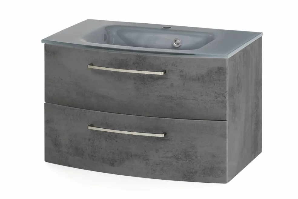 1 meuble sous vasque avec 2 tiroirs à fermeture amortie (à sortie totale), tiroir inférieur avec barres latérales, avec façades arrondies