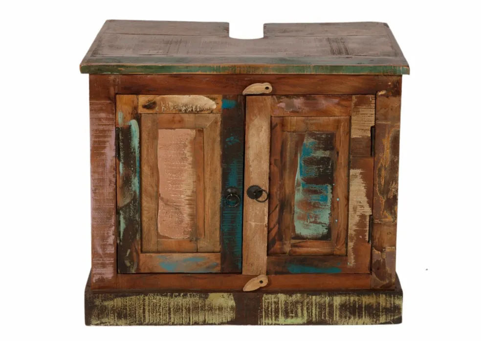 Vieux bois véritable massif (Inde), laqué ton multicolore