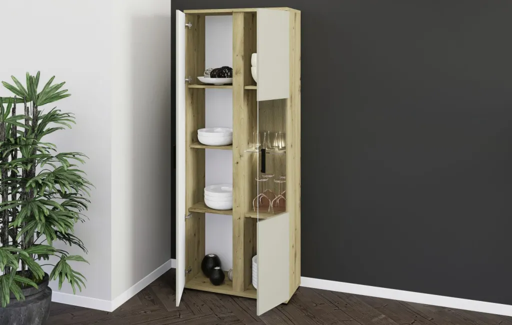 Façade : cachemire avec contrastes décor chêne Artisan, panneau de particules surfacé et mélaminé (PPSM) / verre